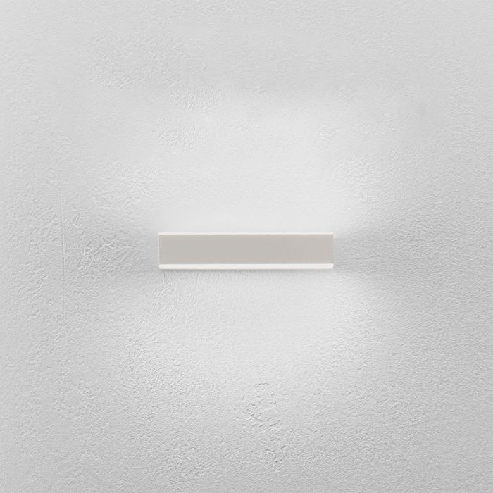 Applique LED con struttura in alluminio di colore bianco satinato e diffusore in acrilico bianco opaco.