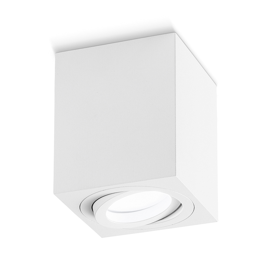 Faretto orientabile con struttura in alluminio e finitura di colore bianco opaco.