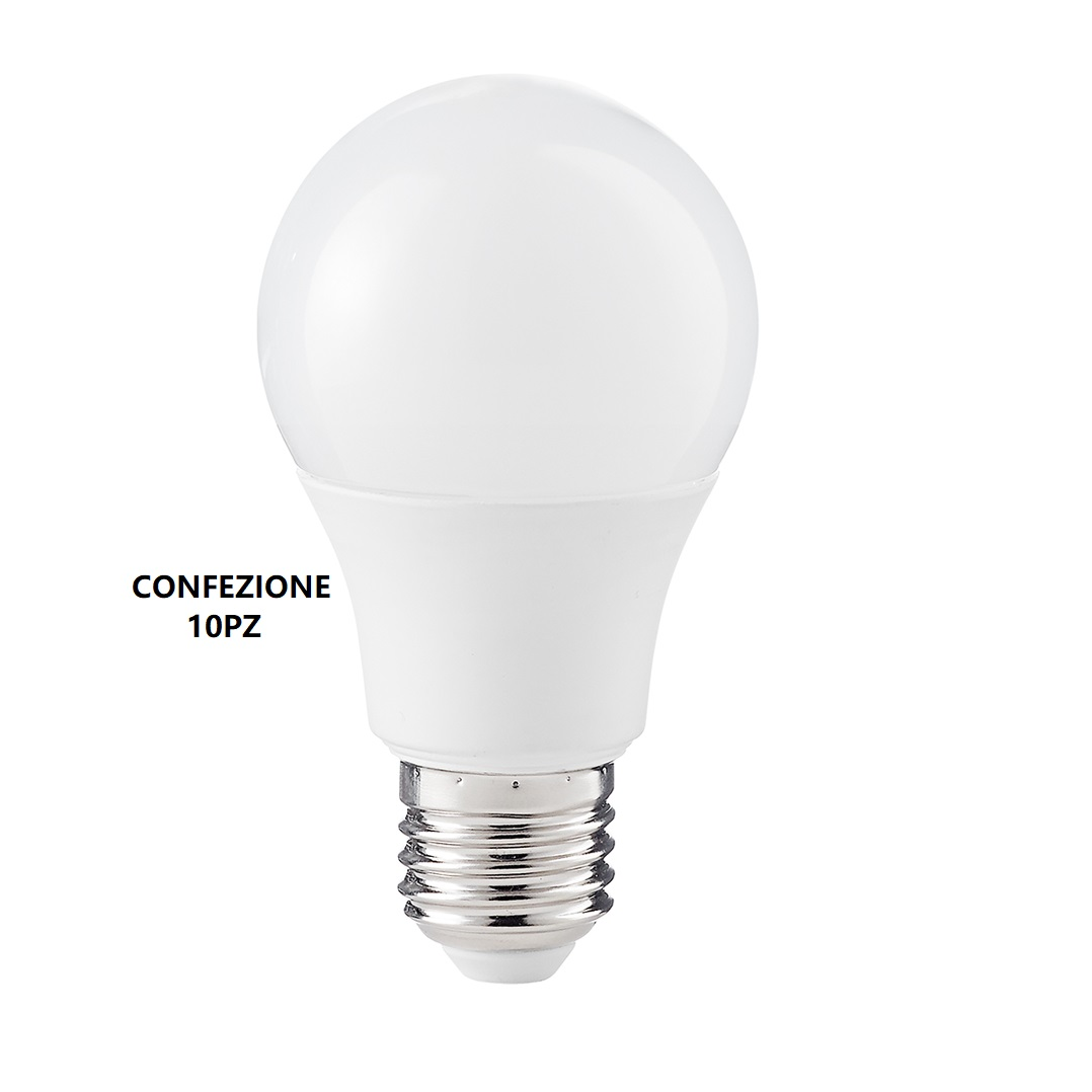 Lampadina LED 10W, 835 lumen, luce fredda, materiale plastica opale.