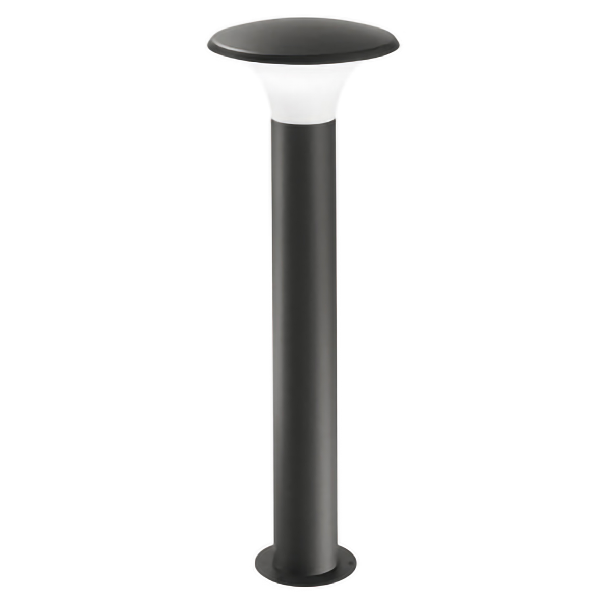 Paletto con struttura in alluminio, finitura in grigio antracite, diffusore in metacrilato opale.