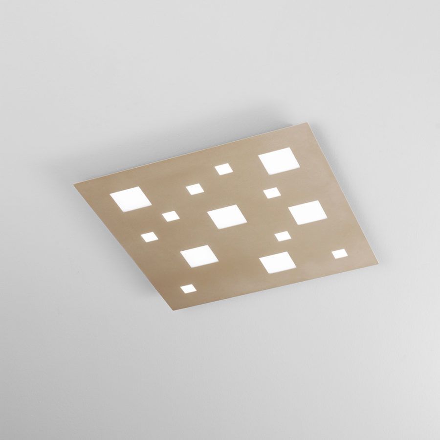Lampada da soffitto, montaggio in aderenza tramite alloggiamento in metallo, diffusore in PMMA, colore sabbia opaco sabbiato.
