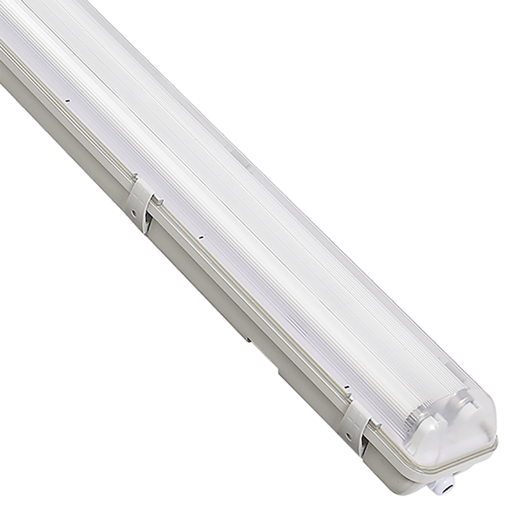 Reglette LED stagna IP65 per due tubi LED T8 da 120cm. Lunghezza 126cm. Apparecchio di illuminazione lineare predisposto per il collegamento di due tubi led da 120cm, per il montaggio a parete o soffitto da esterno.
